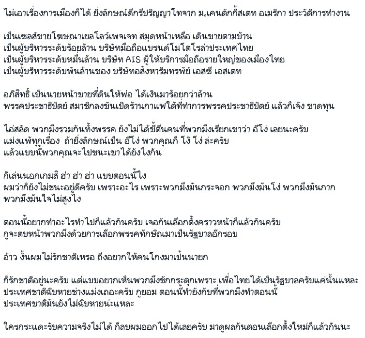 ขอออกตัวไว้ก่อนครับผมไม่ใช่แฟนพรรคการเมืองใดพรรคหนึ่งเลยครับ เพราะผมเป็นคนที่ไม่เชื่อถือนักการเมืองไทยเลยมาตั้งแต่เด็ก เพราะเห็นมาตั้งแต่เด็กแล้วว่า นักการเมืองไทยสัญญาและมักทำอะไรแล้วผิดคำพูดบ่อยๆ จน