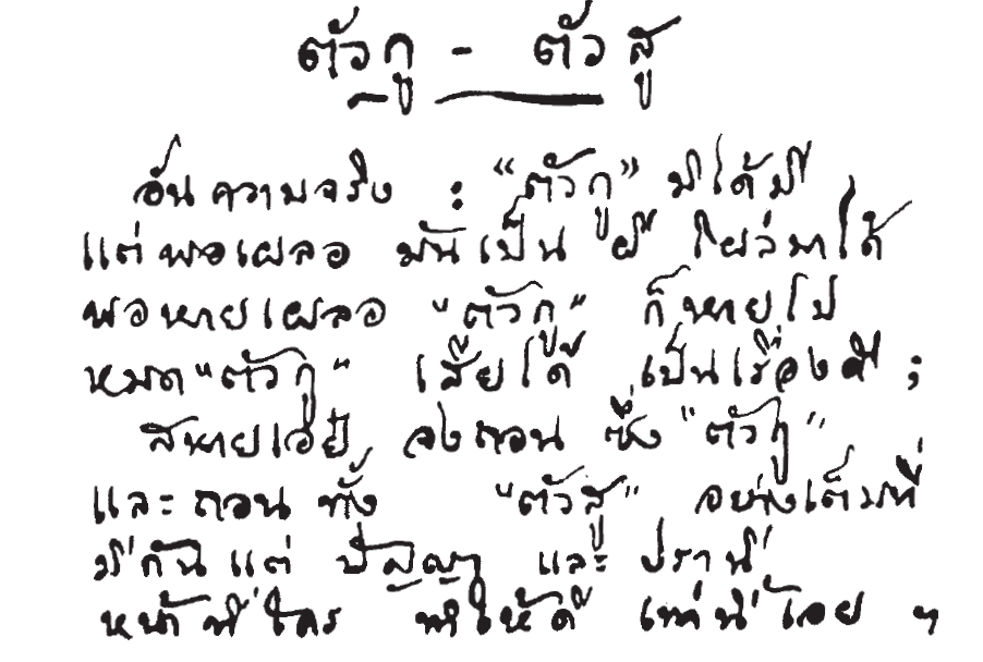 ผมไม่แน่ใจว่าคุณสุเทพได้พบท่านพุทธทาศบ้างไหม ผมอายุน้อยไม่ได้รู้จัก แต่ท่านสอนดีมาก ผมรู้จักท่านจากคำสอน สอนดีมาก บางทีการที่เราไปยึดมั่นว่าต้องทำอย่างนั้นอย่างนี้ มันเท่ากับทำร้ายตนเอง การมีมวลชนมาสนับสนุน ไม่ดีเลยถ้าเราไม่ห่วงเขาและเอาเขาเป็นเครื่องมือ หรือหลงระเริงตามมวลชน สิ่งที่คุณสุเทพและแกนนำทำ ยึดหรือไม่ยึดที่ราชการ ไม่มีความสำคัญเลย ยึดได้แล้วทำไม ยึดไม่ได้แล้วทำไม ไม่ต่างกัน แต่ต่างที่ว่า ทำไปแล้วกระทบใคร หยุดทำผิดเถอะ การกระทำนั้นส่งผลร้ายต่อคนอื่นไหม