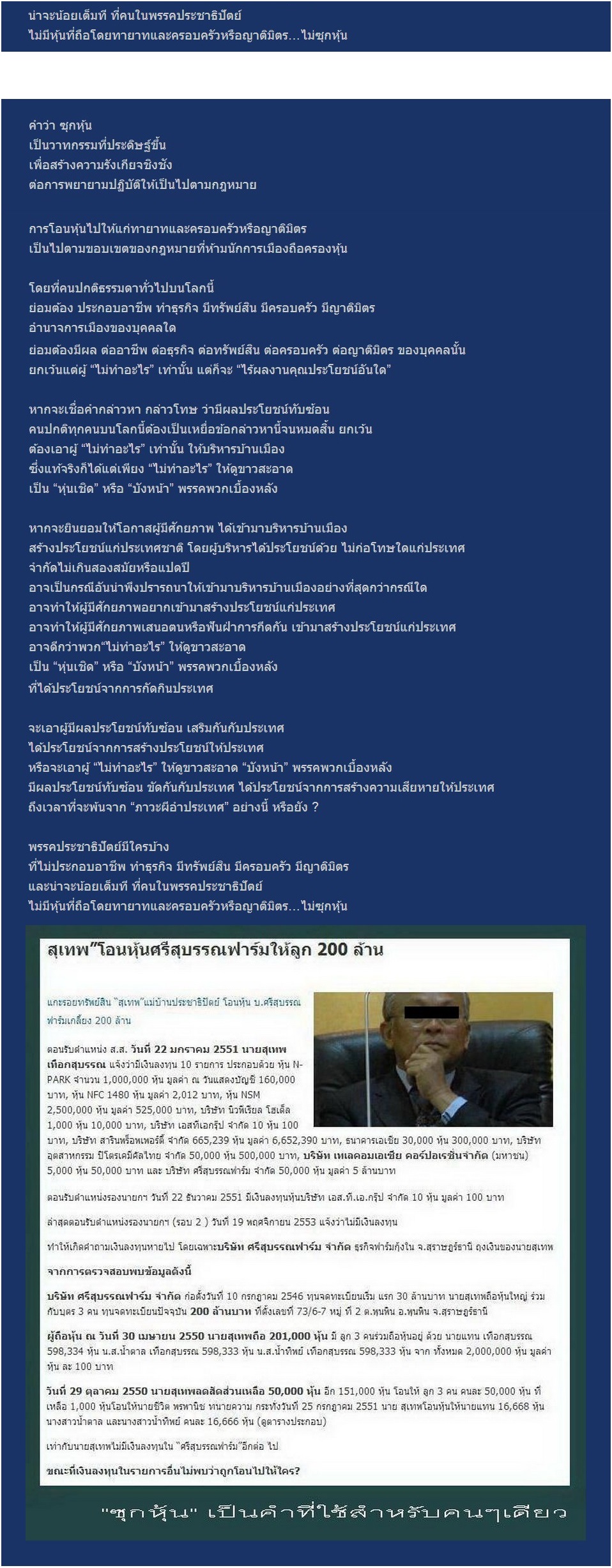 การกระทำของคนบางกลุ่ม บางพรรค บางอย่าง กำลังย่อยสลายตนเองในทุกองคาพยพ กลิ่นและโฉมหน้าตัวตนแท้จริงที่ถูกปกปิดซ่อนเร้น ของคนบางกลุ่ม บางพรรค บางอย่าง กำลังปรากฏและแสดงออกมาเรื่อยๆ