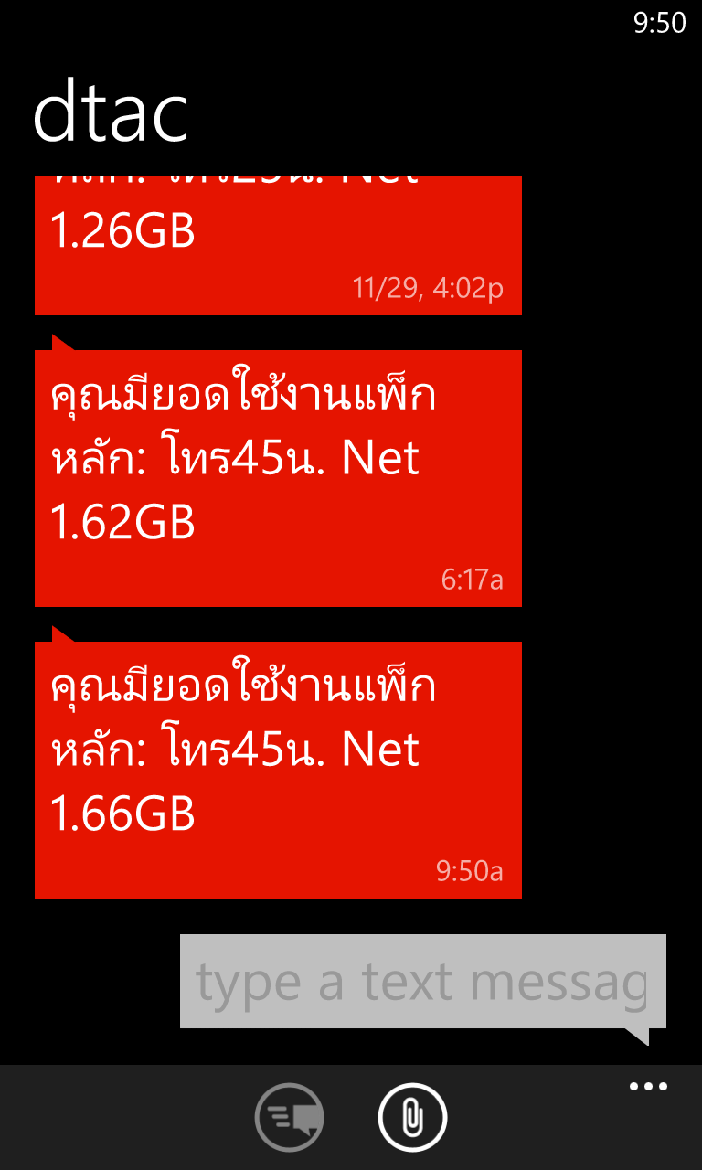 ไม่เคยเป็นแบบนี้มาก่อนใช้โทรศัพท์ nokia lumia 925 ตอนแรกมีเงินอยู่ร้อยกว่าบาท วันศุกร์ (3 ต.ค.) มีข้อความมาบอกว่า คุณใช้เน็ตเกิน 10 บาทแล้วถ้าใช้ต่อจนถึง 49 บาทจะบลาๆๆ เราก็เช็คเงิน เงินก็ลดไปเหลือไม