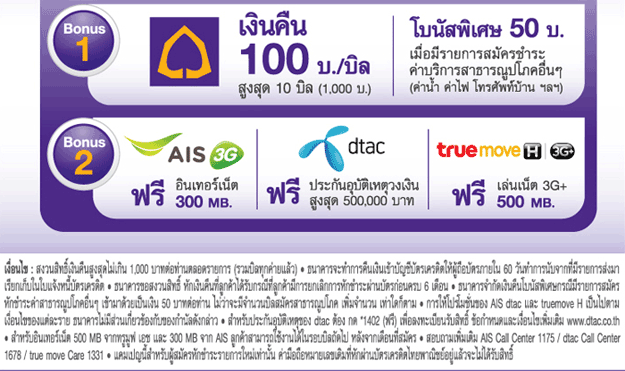 2.ช่วงที่สมัคร หักค่ามือถือผ่านบัตร SCB มีโปรฯ ได้คืนเงิน 100 บาท ต่อบิล (แต่ต้องหักผ่านบัตรอย่างน้อย 6 รอบบิล)
