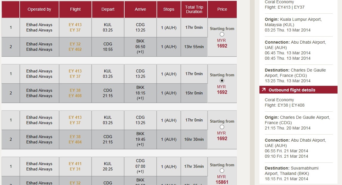 ไปลองกดเล่นๆ ไป - กลับ ฝรั่งเศส ไม่ถึงหมื่นเก้า โอ่... ได้แต่ทำใจ BKK - KUL 1,700 KUL - CDG - BKK 17,000 = ประมาณ 18,700 บาท