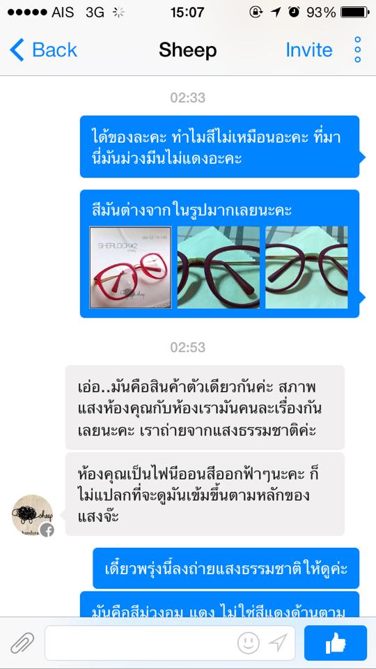 ร้าน Sheep สั่งซื้อแว่นแล้วได้สีไม่ตรงตามที่โฆษณา