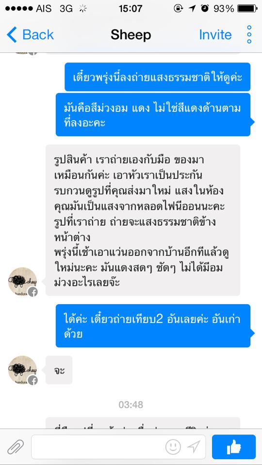 หลังจากได้สินค้าแล้วพบว่าสีไม่ตรงตามรูปที่โฆษณาเอาไว้ ก็เลยเข้าไปสอบถามจากแม่ค้า