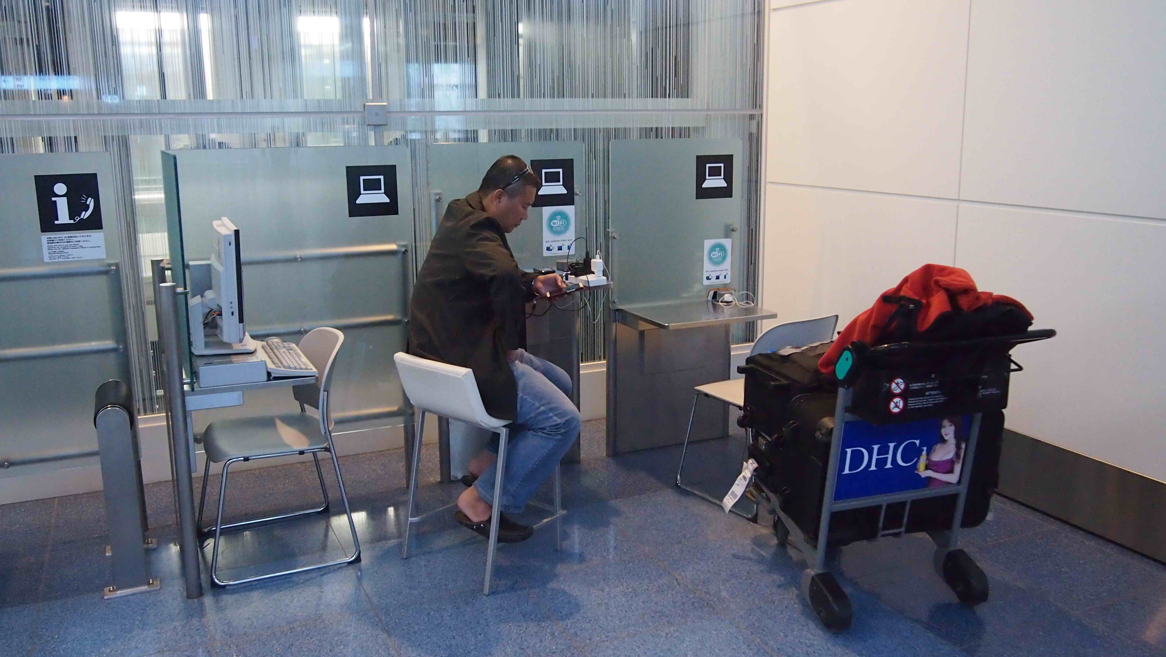 นั่งรอเคาน์เตอร์เปิดจน7โมง45 เคาน์เตอร์ข้างๆก็ทยอยมาเปิดกันแล้วของเราไหงไม่เห็นมีใครมาเลย แต่ได้ยินว่าญี่ปุ่นเค้าตรงเวลามากเอาวะเด้ว8โมงคงมีคนมา ไปเดินเล่นหน้าเคาน์เตอร์มีโทรศัพท์อยู่เครื่องเขียนไว้ว่า ถ้าต้องการจองรถหรือมีปัญหาให้ยกหูโทรศัพท์ จะต่อหาเจ้าหน้าที่ให้อัตโนมัติ ในใจนึกไว้ว่าตรูคงไม่ต้องใช้ไอ้โทสับเครื่องนี้นะ