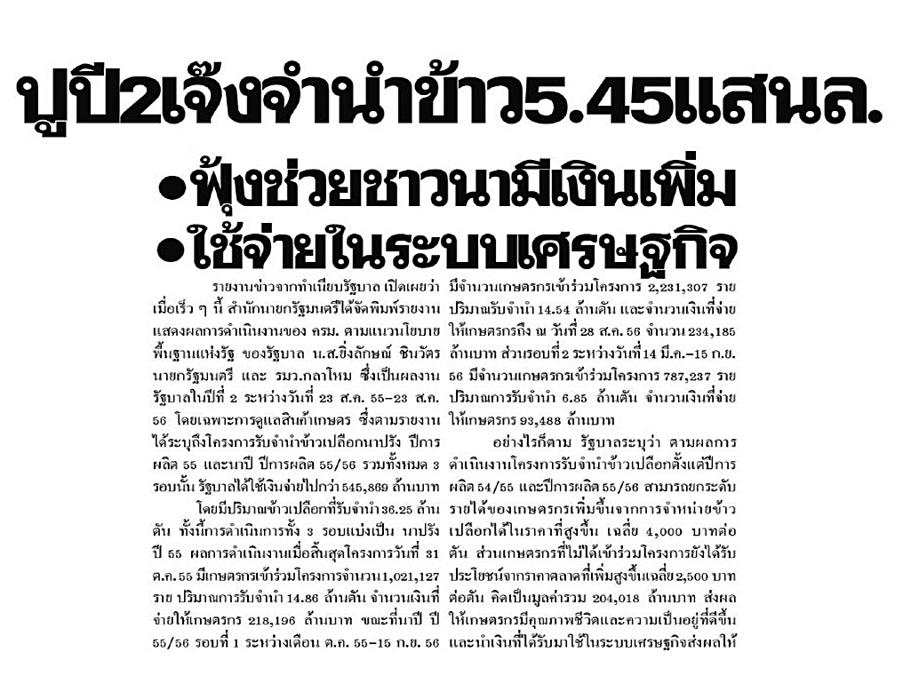 ปูปี2 เจ๊งจำนำข้าว 5.45แสนล้าน ฟุ้งช่วยชาวนามีเงินเพิ่ม ใช้จ่ายในระบบเศรษฐกิจ
