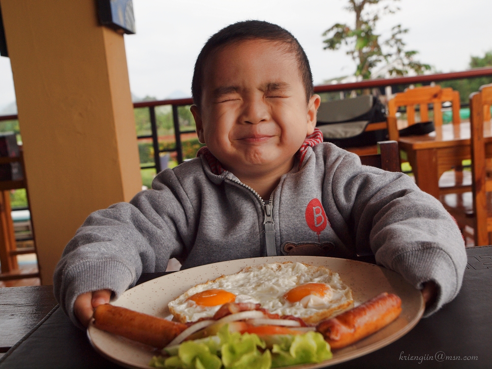 หน้าตา....ไม่รู้ดีใจรึเสียใจ แต่ขอบอกว่าไข่ดาวสองฟองนั้น หมดเกลี้ยง