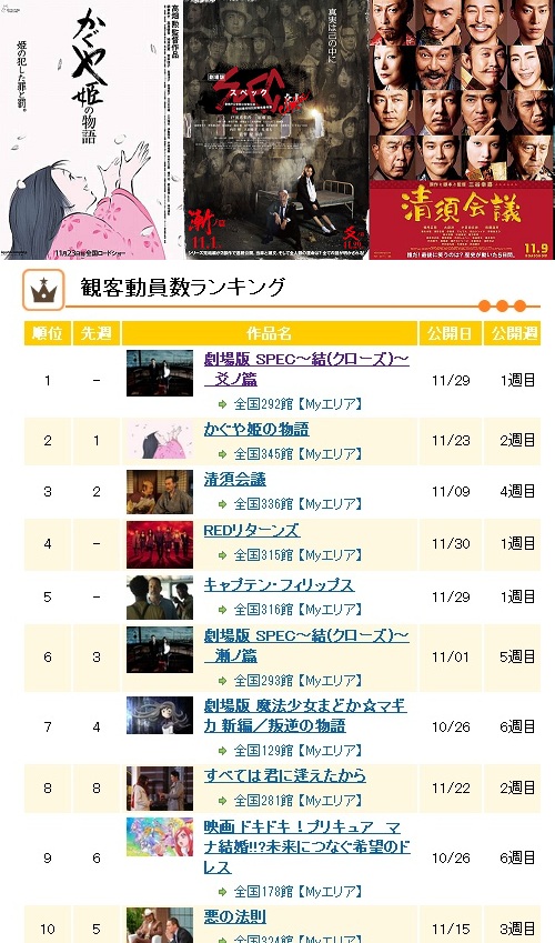 Japan Box Office 30พย.-1ตค. เจ้าหญิงคางุยะ 2สัปดาห์ 800ล้าน มาโดกะ3 ฉายเดือนครึ่ง จ่อ1,800ล้าน