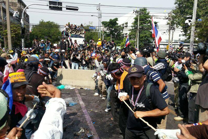 โปรดฟังอีกครั้งหนึ่ง ประกาศ!!! คณะมวลมหาประชาชนเพื่อการปฏิรูปแห่งประเทศไทย ได้ทําการยึดอํานาจไว้เรียบร้อยแล้ว ขอให้พวกระบอบทักษิณ และ ขี้ข้าควายแดง มารายงานตัวนับตั้งแต่บัดนี้เป็นต้นไป ก่อนที่จะไม