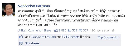ต่ะกิครับ แกบอกว่าเข้ายึด บชน เข้ายึดทำเนียบแล้ว ตำรวจเปิดทางให้ เราชนะแล้วจร้า....ดีใจด้วยนะครับ สุเทพ ท่านชนะแล้วท่านมีทางลง ท่านมีทางบอกกับพี่น้องประชาชนแล้วครับ ว่าท่านทำภารกิจครบแล้ว และท่านจะม