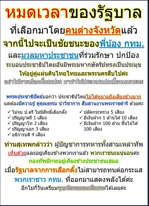 จึงเรียนมาเพื่อทราบ ถ้าไม่อยาก หัวขาด จง เชื่อ ฟัง ท่าน สุเทพ เลขา สปปส แต่เพียงผู้เดียว