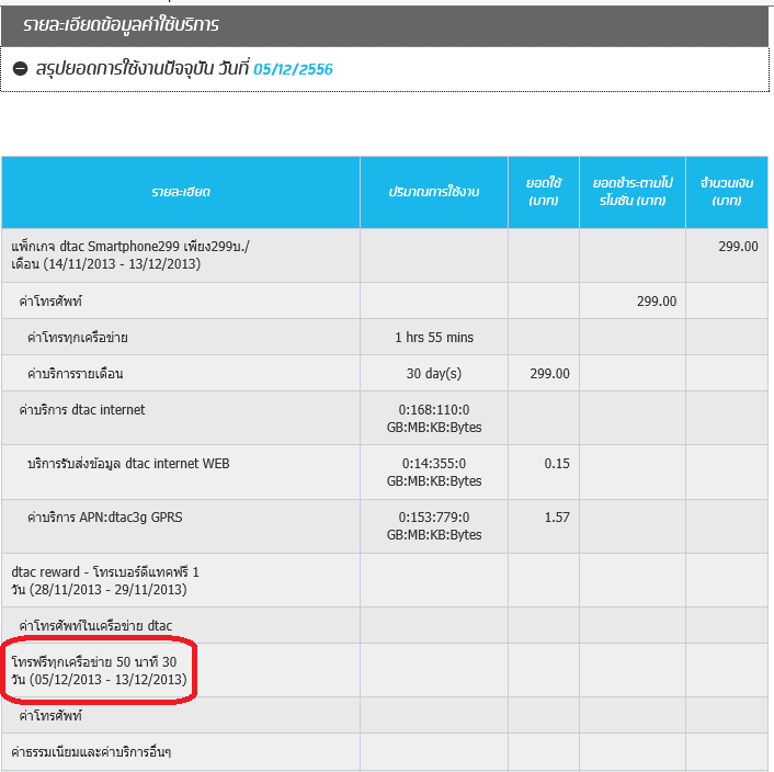 ตอนนี้ใช้โปรโมชั่นของ Deezer ค่ะ แล้วในรายละเอียด บอกว่า แพ็กเกจ Smart DEEZER จ่ายเดือนละ 599 บาท (13/09/2013 - 12/10/2013) 458.00 ค่าธรรมเนียมและค่าบริการอื่นๆ - ค่าบริการ dtac wifi (13/09/2