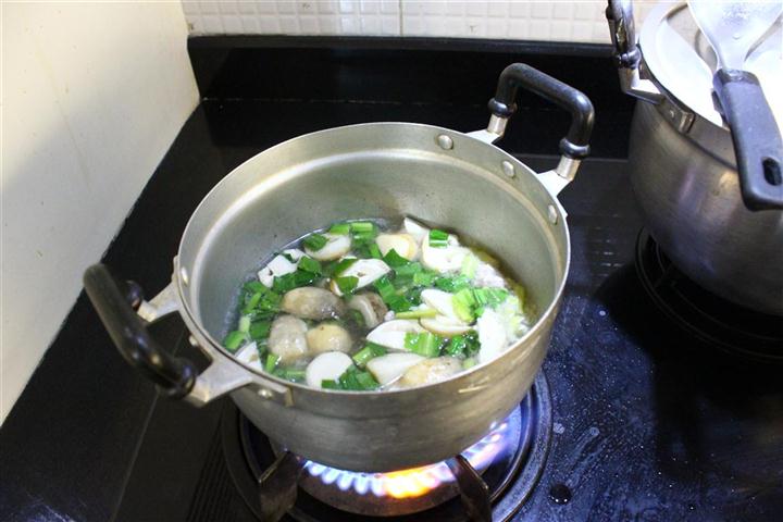 น้ำเดือดอีกรอบใส่หมูสับ ผักชีฝรั่ง เห็ดฟางลงไป