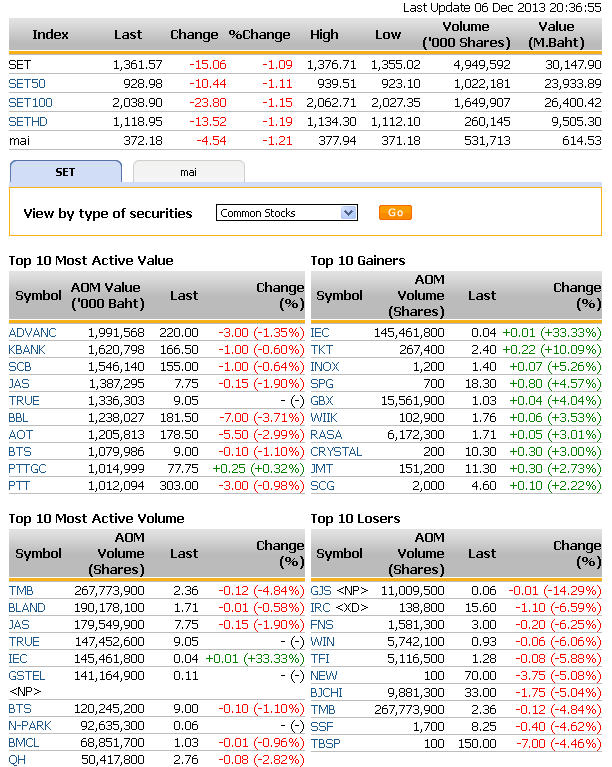 ### Graph Stock : Top 10 . Weekly 06.12.2013 ###