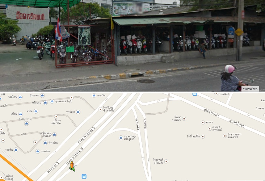 ร้านเช่ามอเตอร์ไซค์ในกรุงเทพฯ หายากมาก แต่สุดท้ายก็ได้เจอร้านอยู่ร้านนึง ร้านตั้งอยู่ที่ถนนพระราม 4 ใกล้กับแยกมหาวิทยาลัยกรุงเทพ ตรงป้ายรถเมล์แรกหลังจากผ่านแยก ฝั่งมุ่งหน้าคลองเตย รถมีหลายรุ่น ทั้ง