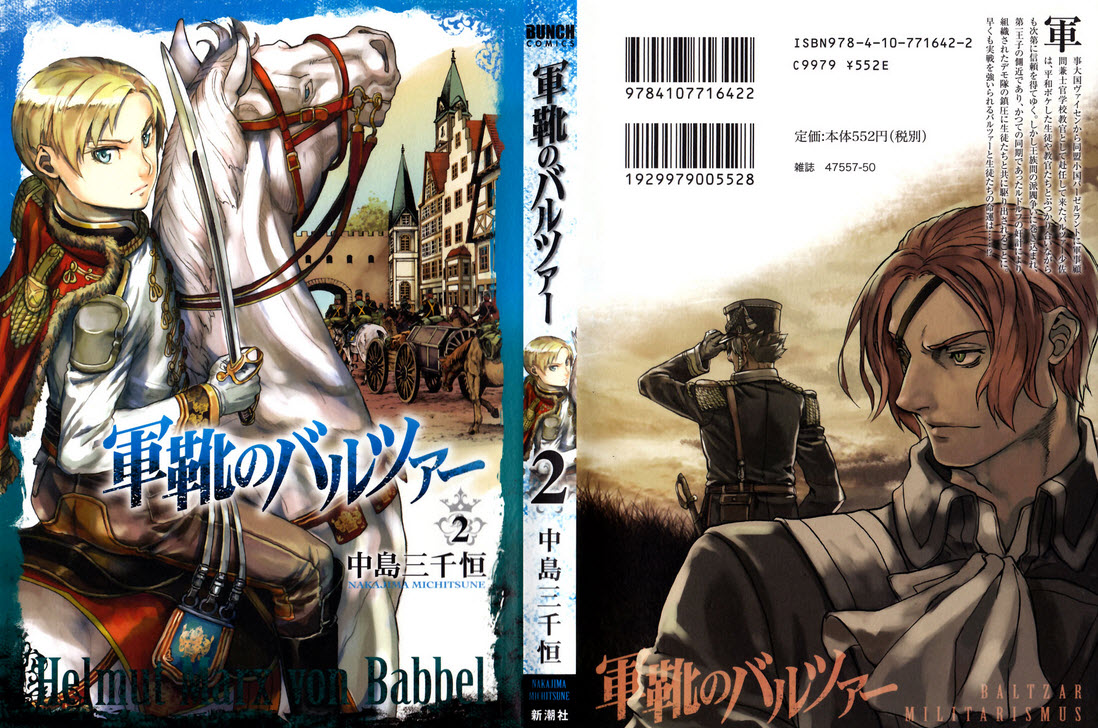 (ปกหน้า) นักเรียนทหารม้าชั้นปีที่ 3 Helmut Markus von Babble มาจากตระกูลชนชั้นสูงของ Baselland เป็นคนชอบออกคำสั่ง หยิ่งทะนง แต่เป็นนักเรียนดีเด่นของรุ่นเลยทีเดียว (ปกหลัง) Rudolph von Liebknecht มีอดีตลึกลับเกี่ยวข้องกับ Bernd เป็นผู้ปลุกปลั่นความโกลาหลในประเทศต่างๆ