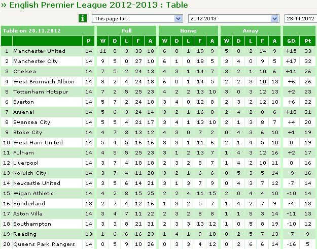 ตอนนี้ผ่านมา14นัดเเล้วเเมนยูมี22เเต้ม ยังมีเเต้มให้เก็บจากการเเข่งขันที่เหลืออีก24นัดถึง72เเต้ม รวมได้94เเต้ม