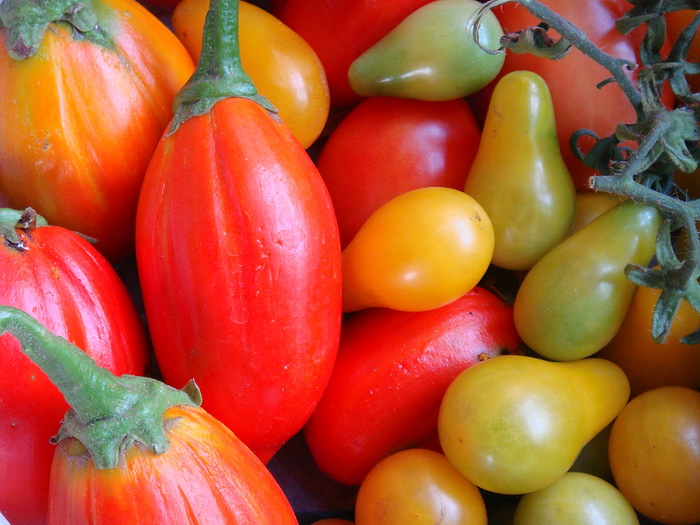 ผักเช่น มะเขือ, มะเขือเทศต่าง ๆ ฟักทอง แตงกวา น้ำเต้าแปลก ๆ