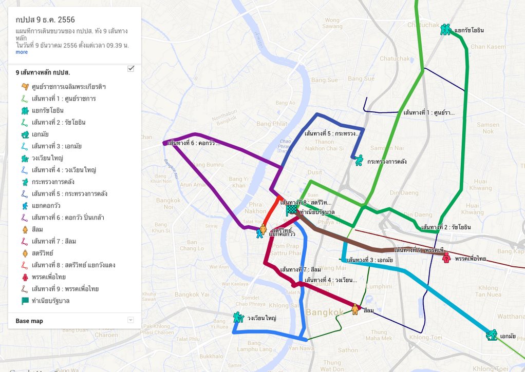 แผนที่สรุป 9 เส้นทางเคลื่อนขบวน กปปส. เส้นทางการเคลื่อนขบวนในวันที่ 9 ธ.ค. 9.39 น. มุ่งสู่ทำเนียบ