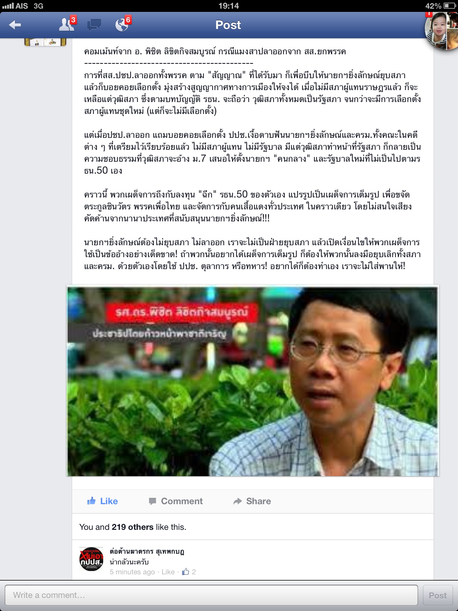 ความเห็นของอาจารย์พิชิตกรณีพรรคแมงสาปลาออกจากการเป็น สส. ยกพรรคช