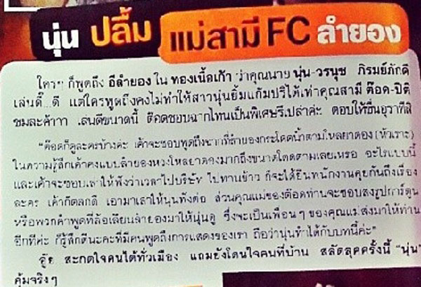 เรื่องเนี่ย. อีลำยองติดเหล้า. ใช่แล้วเหล้าหรือสุราก็จะนึกถึง บ.บุญรอด. โดยมี ต๊อด ภิรม. เป็นประธานกรรมการและต๊อดก็คือ สามี นุ่นวรนุชหรืออีลำยอง ชัด! โฆษณา แฝง