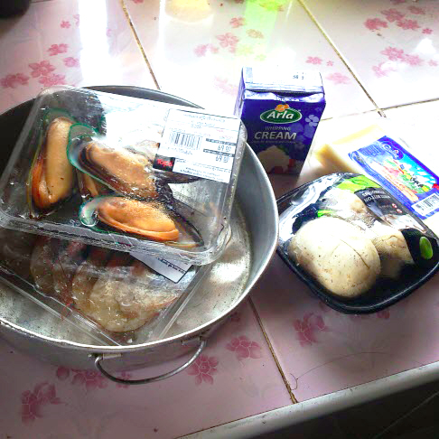 ชั้นบนถัดมามันก็จะมีซอสลักษณะเหมือนซอสครีม ซึ่งเราก็ไม่รู้ว่ามันคือยังไง เลยเหมารวมไปเลยว่ามันคือซอสครีมสปาเกตตี้ มั่วมาก ตามประสาคนไม่เคยทำ 55