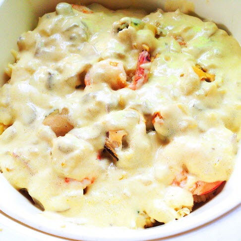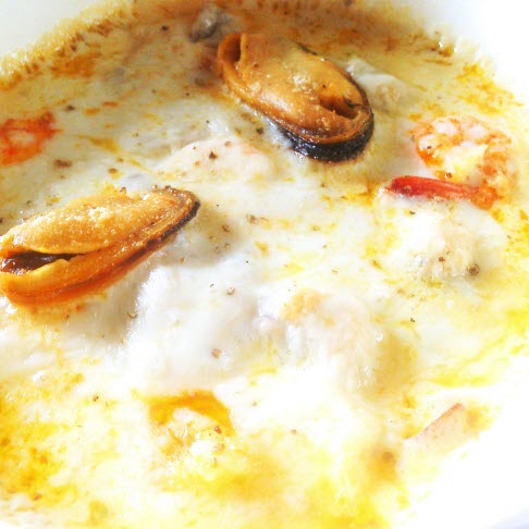 ชั้นสุดท้ายมีชีสโปะกับซีฟู๊ด ด้วยความที่เราไม่เคยทำอาหารฝรั่งมาก่อน และกลัวว่าชีสมันจะคลุมไม่ทั่วเลยเล่นหั่นมันทั้งก้อนและละเลงจนเต็มชามใส่โดเรียเลย เพื่อนคนญี่ปุ่นถามเราว่า เธอใส่พาสต้าด้วยเหรอ เราก็ห๊ะ ไม่ใช่ค่ะนี่ชีส!! เอ๊ะหรือว่าเราจะใช้ชีสผิดอันคะ หรือปกติเค้าไม่ใช้ชีสแบบนี้ TT