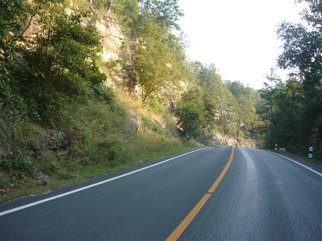 ปั่นเรื่อยๆ มาจนถึงด่านที่หนึ่ง รถยนต์เริ่มเยอะ ผมลืมนึกไปว่าเป็นวันหยุดยาว ผ่านด่านมาได้หน่อยก็เจอเนินรับน้อง ที่มีความชันให้ได้เพิ่มแรงและรอบขาเรียกเหงื่อแก้หนาวได้เป็นอย่างดี