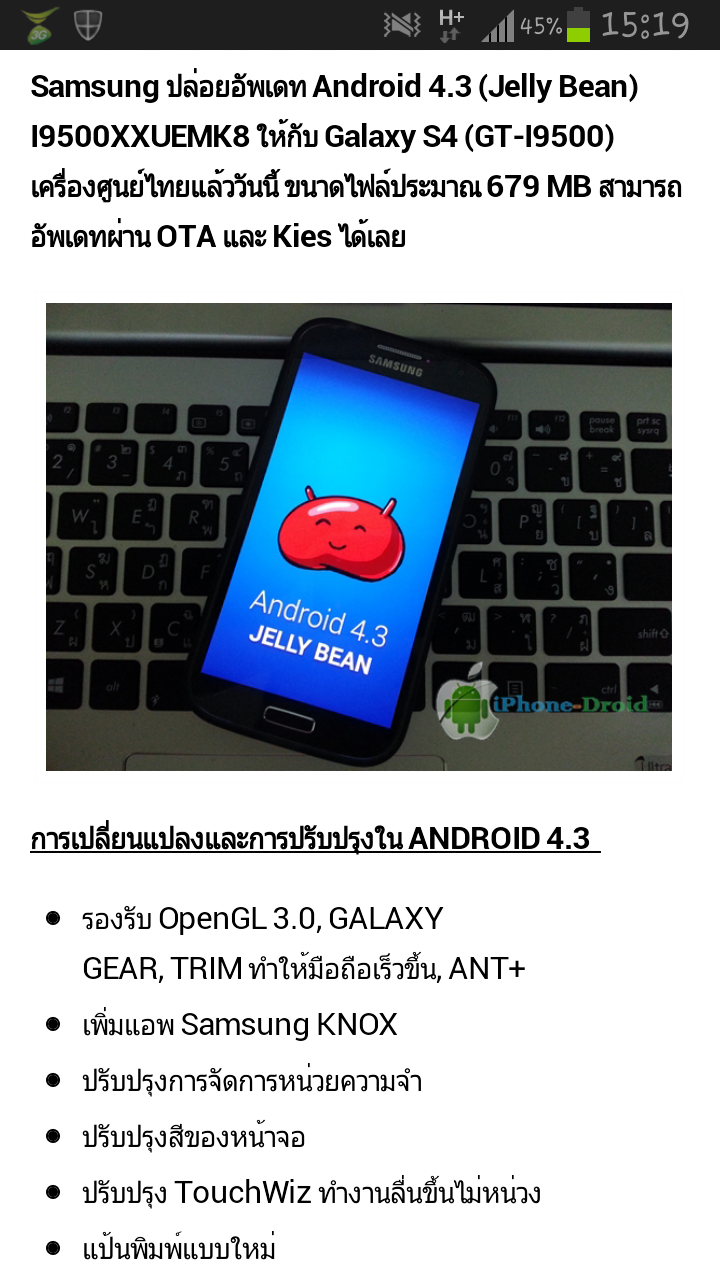 Sumsung galaxy s4 Update android 4.3 แล้ว วันนี้