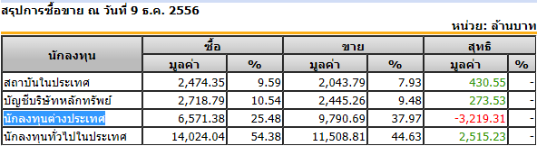 สรุปการซื้อขาย ณ วันที่ 9 ธ.ค. 2556