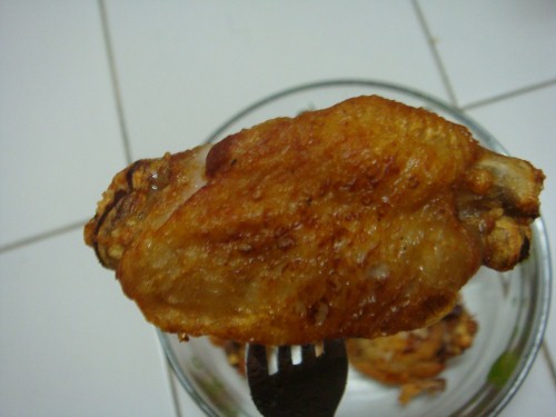 กินปีกไก่กลางทอดเกลือโรยกระเทียมเจียวกันครับ