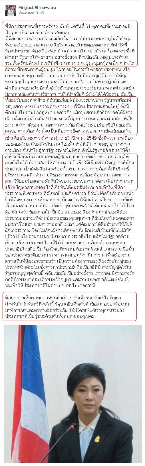 รัฐบาลยิ่งลักษณ์ ยังไม่ได้ใช้ความรุนแรงสลายกลุ่มผู้ชุมนุมจนทำให้ประชาชนต้องเสียชิวตแม้แต่เพียงคนเดียว