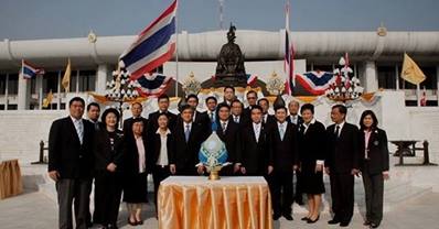 พรรคประชาธิปัตย์ นำพานประดับพุ่มดอกไม้ ถวายบังคมพระบรมราชานุสาวรีย์ รัชกาลที่ 7 เนื่องในวันรัฐธรรมนูญ