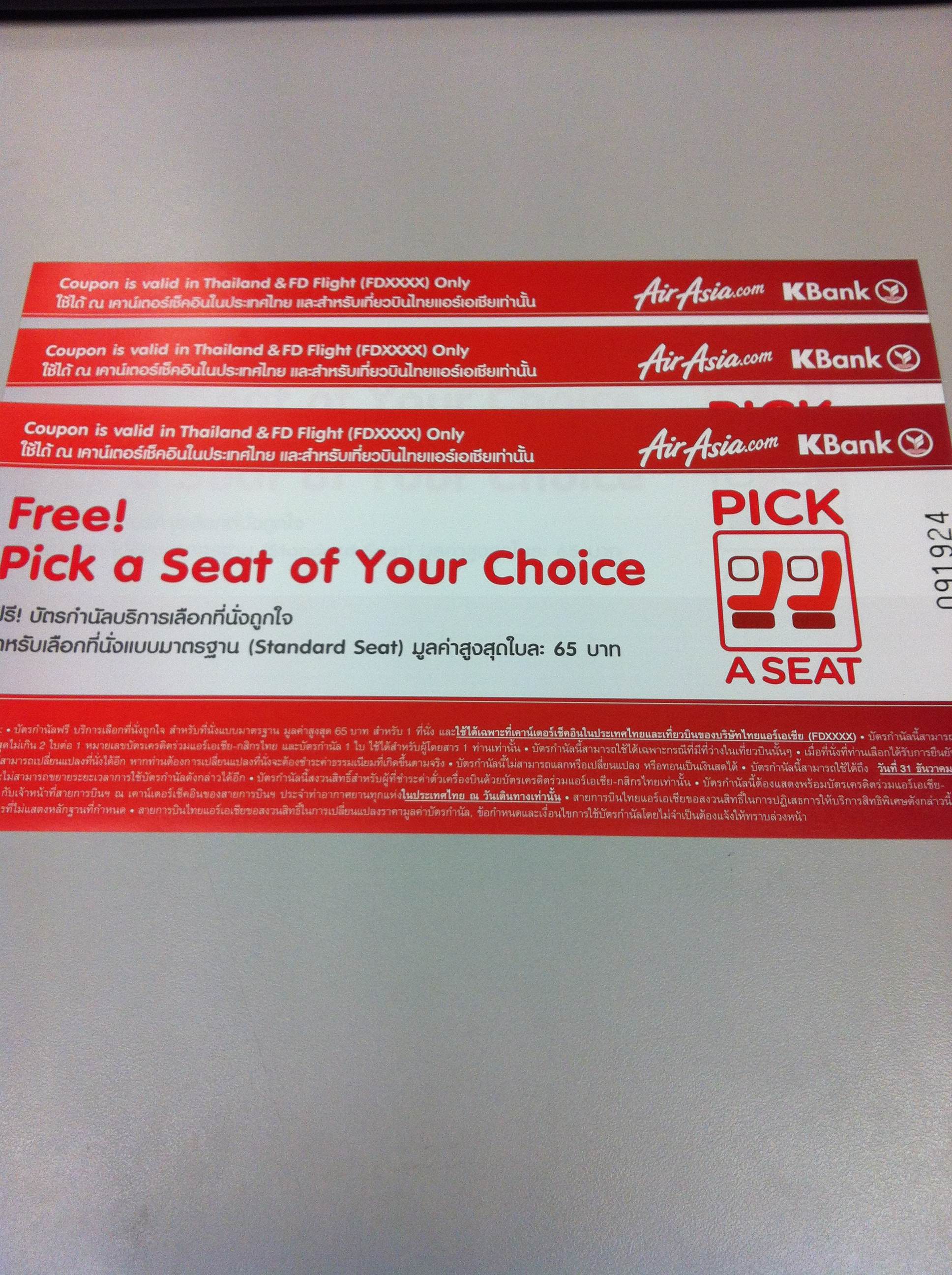 - คูปองเลือกที่นั่งแอร์เอเชีย (FD) 3 ใบ