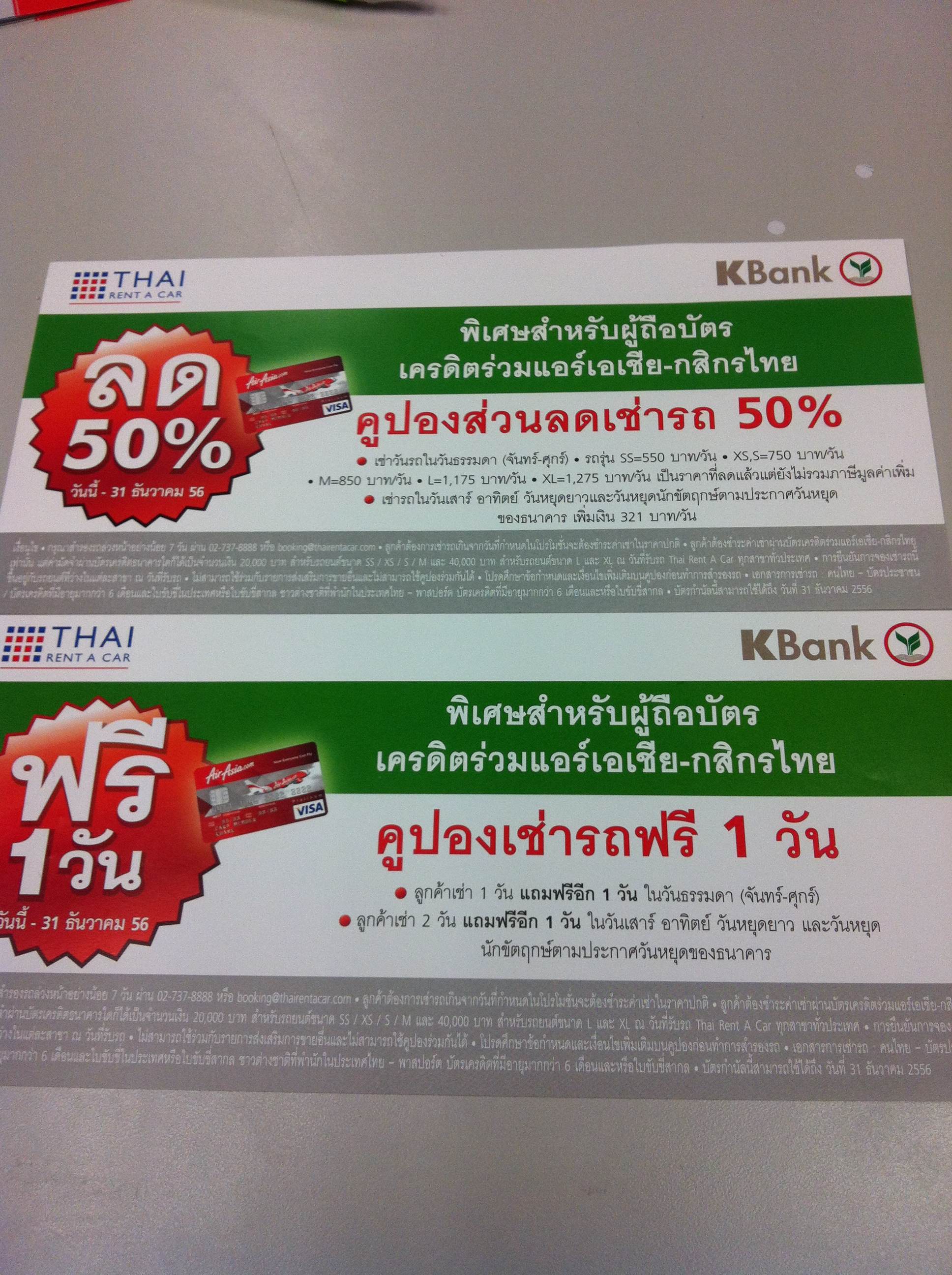 ไม่รู้จะมีคนสนใจหรือเปล่า เรามีคูปองที่แถมมาตอนสมัครบัตรเครดิตกสิกร-แอร์เอเชียอยู่ตามนี้ค่ะ