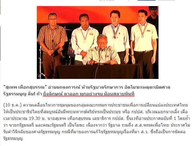สรุปว่าสุเทพยังจะชุมนุมประท้วงต่อใช่ไหมครับ