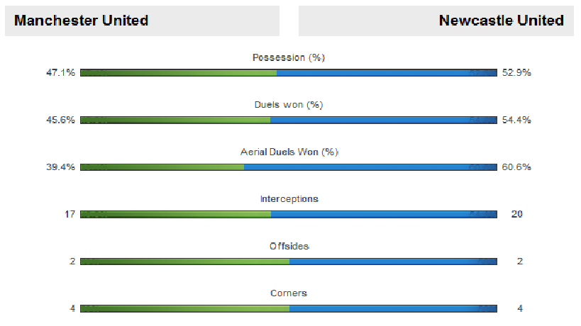 มองดูสถิติแล้วยิ่งปวดใจครับเกมกับนิวคาสเซิลเล่นในบ้านแท้ ๆ ครองบอลก็เป็นรอง การตัดเกม การทำเกมเป็นรองหมด เฮ้ออ