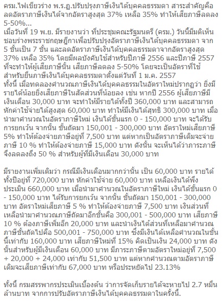 สืบเนื่องจากข่าว เรื่องการปรับปรุงภาษีเงินได้บุคคลธรรมดา