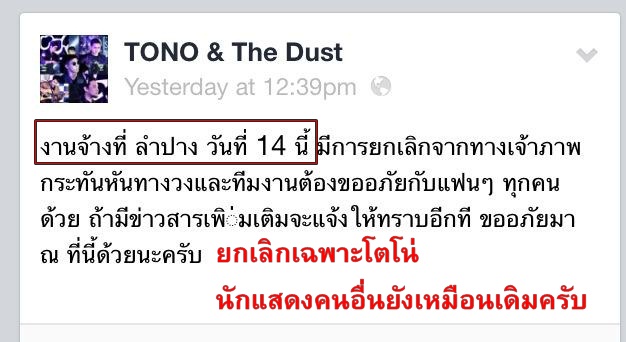 เสียดายจัง งานใหม่ก็มีขอให้กำลังใจโตโน่และคณะ