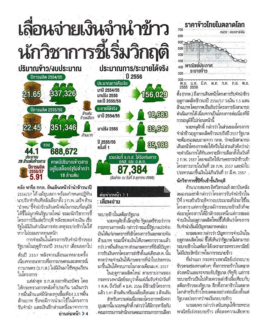 ชาวนาโวย ไม่ได้เงินจำนำ ขู่รวมตัว 'บุกทวงนายกฯ' 18/11/56 มติชน