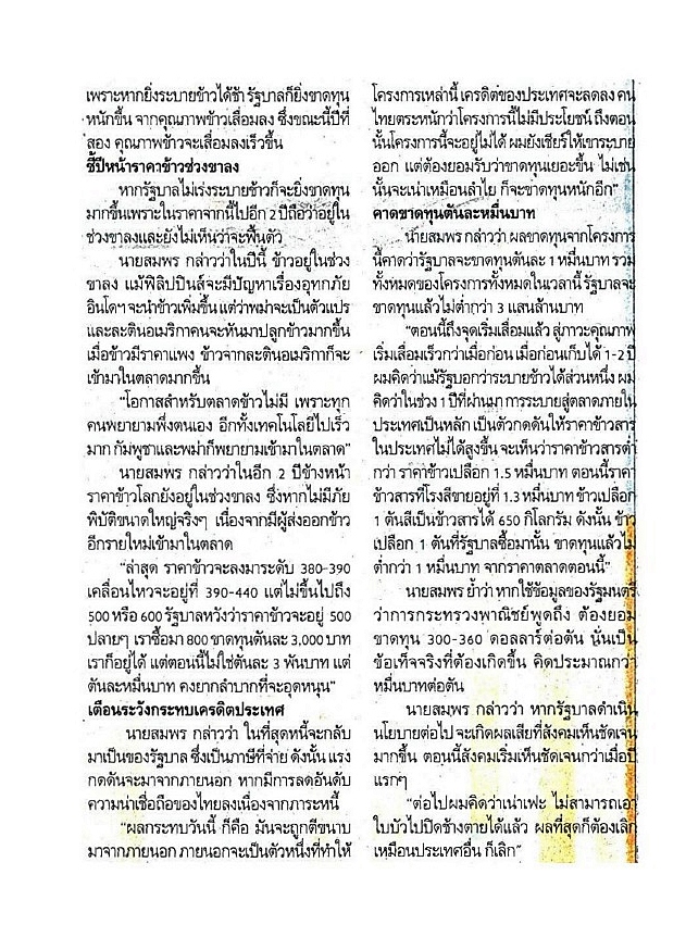 ดูรายการ ทาง TNN 7 จานทรูวิชั่น เมื่อคืน 16 ธค เวลา 2 ทุ่ม หมอชัย ชี้ให้เห็นถึงเล่ห์ของ TDRI ในการให้ข้อมูลจำนำข้าว สมควรที่รัฐบาลควรจะนำไปเผยแพร่ทางช่องทางสื่อรัฐ เช่นช่อง 11 และช่อง 9 อสมท. รวมถึงอ