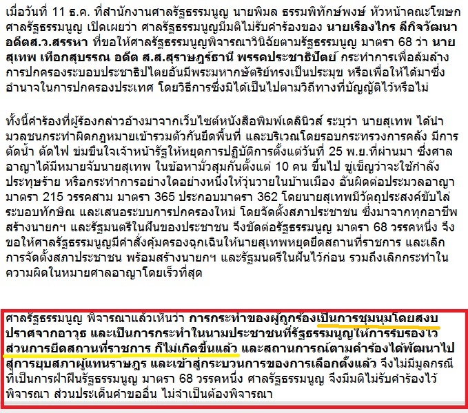 กรณีที่ ๒ ศาลไม่รับคำร้อง เพราะเห็นว่า กปปส ชุมนุมโดยสงบ ปราศจากอาวุธ และไมม่มีการยึดสถานที่ราชการเพิ่มเติมอีก