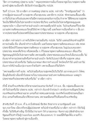 ช่วงเวลานี้ ขอชื่นชมในการทำหน้าที่ของทหารเป็นอย่างยิ่ง ที่ไม่ออกมาเป็นเครื่องมือให้กับกลุ่มกปปส. และขอชื่นชมรัฐบาลที่ตัดสินใจได้รอบคอบคือ การไม่เลือกใช้บริการของเจ้าหน้าที่ทหารอันจะทำให้เกิดการสูญเสียของเหล่าพี้น้องประชาชนคนไทยด้วยกัน แต่อนาคตต่อไปประเทศของเราจะเป็นยังไง หากคนไทยทุกคนข้ามไม่พ้นแม้ว ไม่งั้นบ้านเมืองก็จะวกวนไม่สามารถผ่านพ้นวิกฤตไปได้ ลูกหลานจะเป็นยังไง พวกเราจะทำยังไงกันทั้งเหลืองทั้งแดง