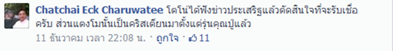 อ้อ แล้วคุณโตโน่ เค้าเป็นคริสต์ด้วยรึเปล่า?