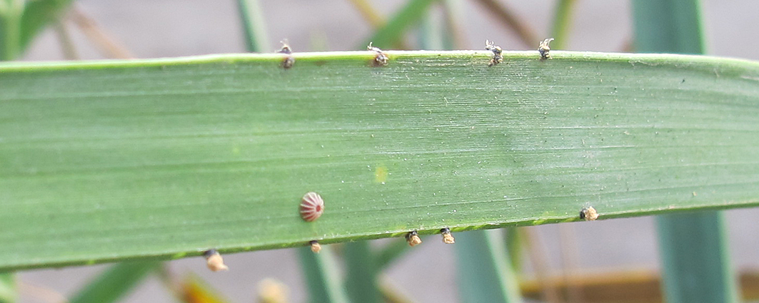 ลักษณะใบที่โดนกัดกินจะเป็นใบแห้งเหี่ยว ไหม้ อย่างนี้