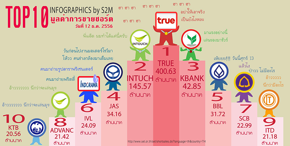 ADVANC ขึ้นอันดับ 1 มูลค่าชอร์ต 180 ล้านบาท TRUE-PTT ติดอันดับ 2-3 Infographics by S2M