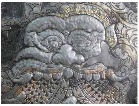 ที่เห็นเป็นทองแดงๆ เห็นเขาบอกว่าใช้ทองคำเปลวทำ(ถาจำไม่ผิดนะคะ)