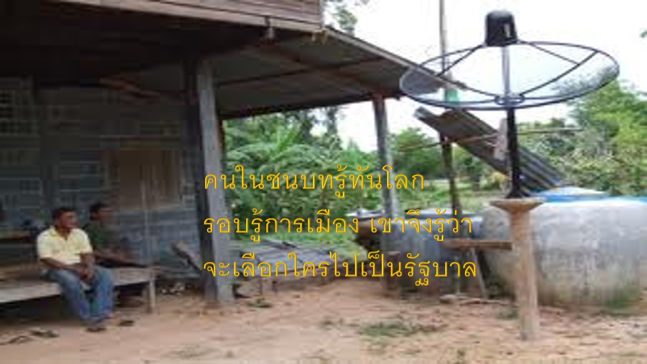 เอาอะไรมาพูด 1 เสียงในชนบท มีคุณภาพไม่เท่าเสียงคนกทม. หรือในเมือง เพราะมีจานดาวเทียมทุกที่ทั่วประเทศไทย คนเมืองมีจานดาวเทียม ที่บ้านนอกก็มีจานดาวเทียม เขารู้ว่าพรรคการเมืองใด น่าจะเป็นประโยชน์กับพวกเขาถ้าได้รับเลือกเป็นรัฐบาล