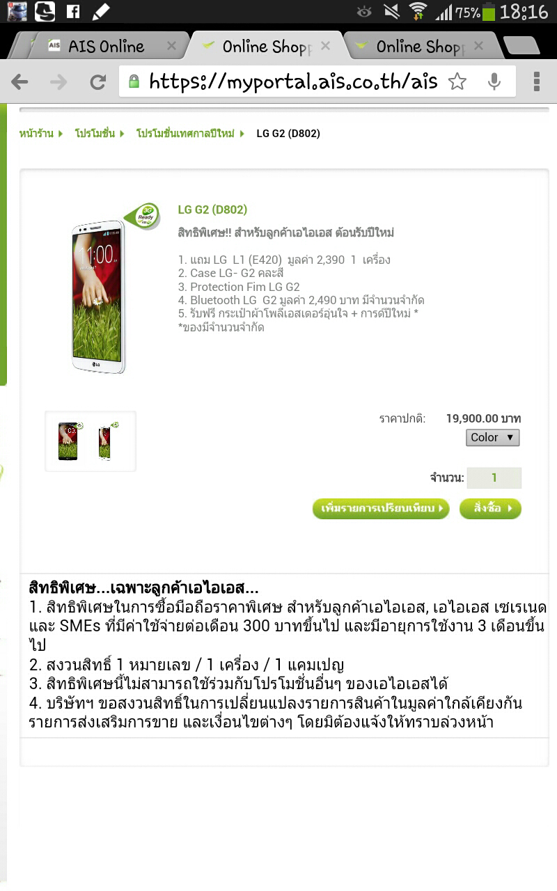 AIS ครับ สนใจจะซื้อ LG G2 ของโปรโมชั่น New year sale 2014