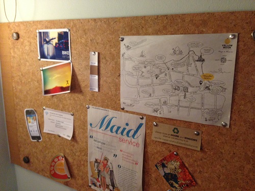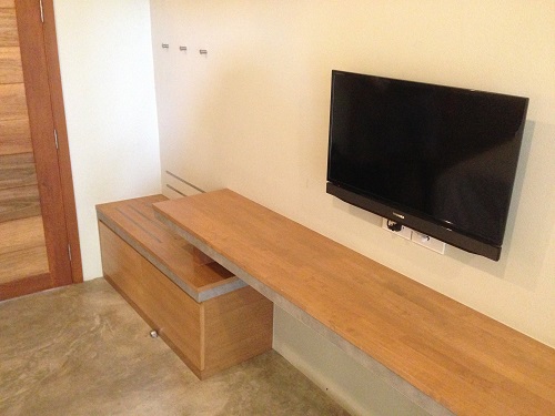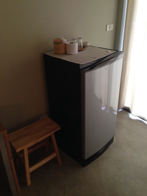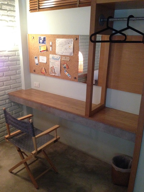 ข้างเตียงเป็นเหมือนโต๊ะเขียนหนังสือ+แขวนเสื้อผ้าค่ะ (ไม่มีตู้) ตรงบอร์ดเป็นที่แปะแผนที่ และ instruction ต่างๆ ในห้อง (รหัสฟรี wifi, etc)